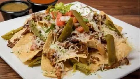 Our Nachos are topped with special sauce asada, beans, cheese, guacamole, sour cream, pico de gallo, and Jalapeños.