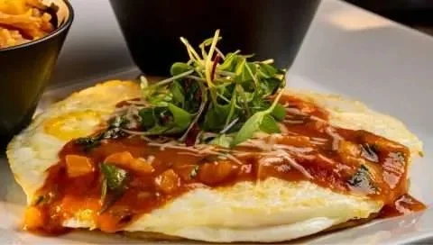 Spinach, mushrooms, bacon, and cheese Topped with sour cream and green onions. Served with homemade breakfast potatoes and toast. Make it with only egg whites add $2.25