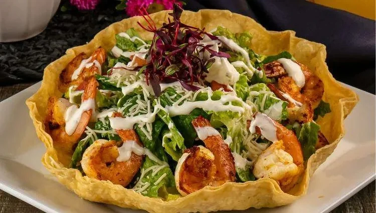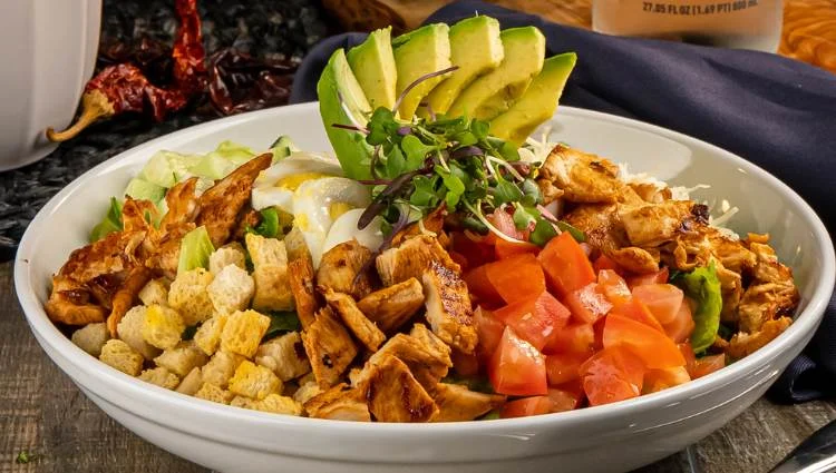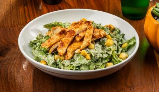 Fresh romaine tossed with creamy caesar dressing, chicken, corn, cotija cheese, and croutons.