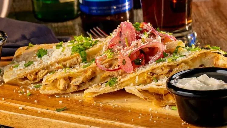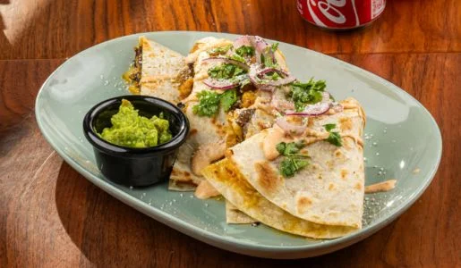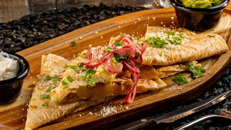 Your choice of meats: Asada, chicken, pastor, or carnitas.With beans, cheese and our special sauce topped with guacamole, sour cream, pico de gallo