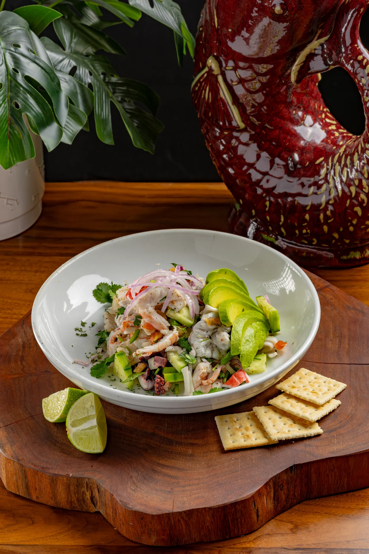 Mahi-Mahi, Grilled Veggies, Rice, Black Beans, Pico De Gallo And Guacamole.